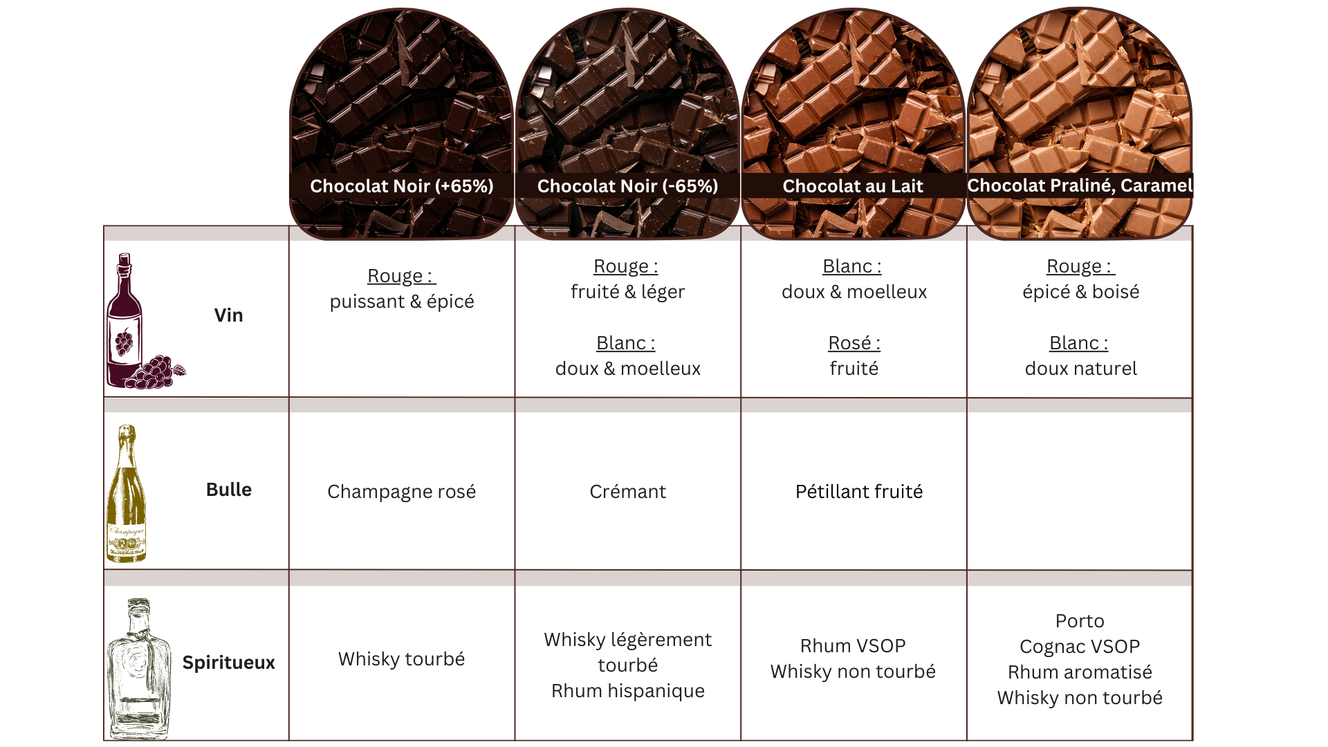 Ce que je vous conseille de déguster avec les différents types de chocolat :